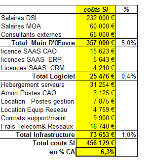 Nous allons tout d'abord recenser l'ensemble des dépenses relatives au SI, puis les ventiler pour chacune des activités de l'entreprise.
